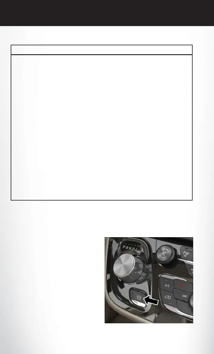 • Never use the PARK position as a substitute for the parking brake. Always apply the parking