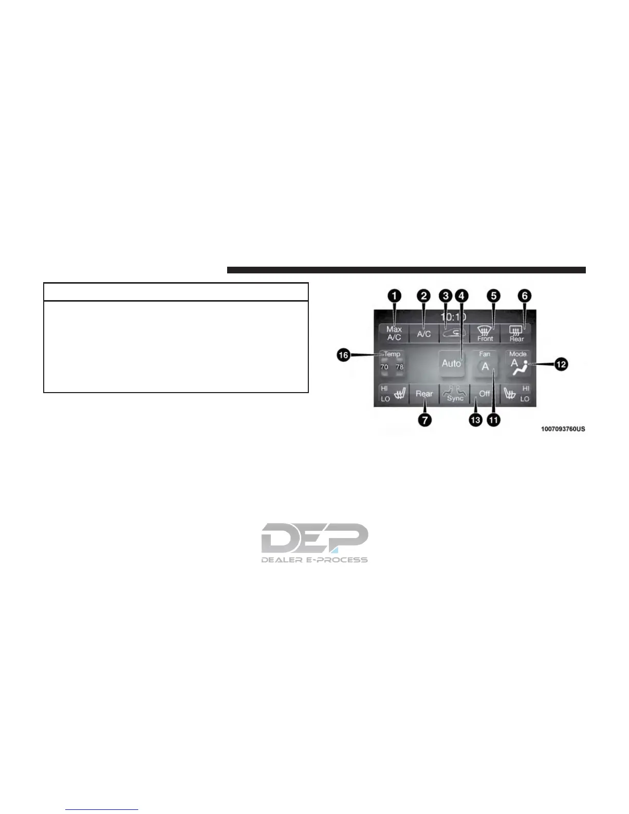 Uconnect 5.0 Automatic Climate Controls — Buttons On
