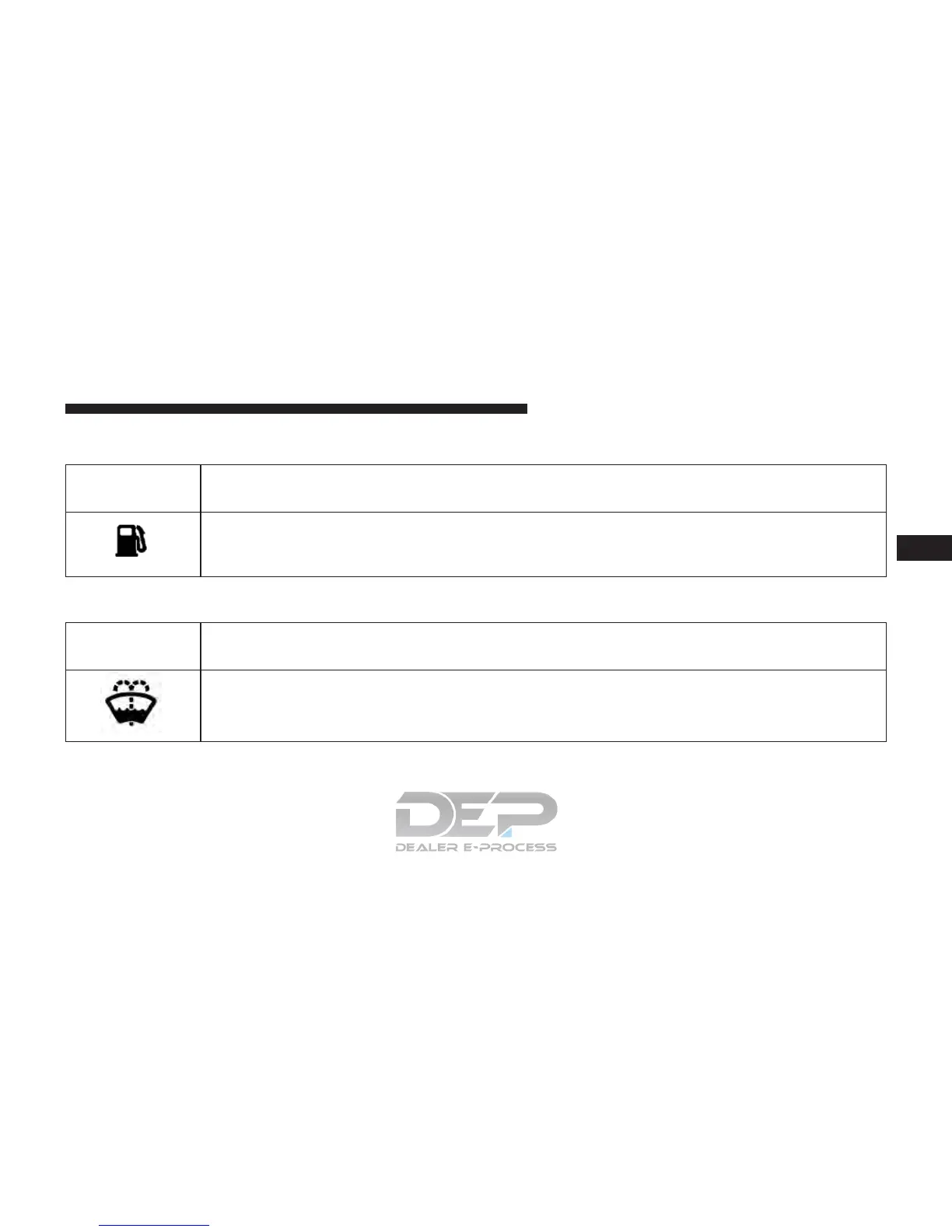 This indicator will illuminate when the windshield washer fluid is low.