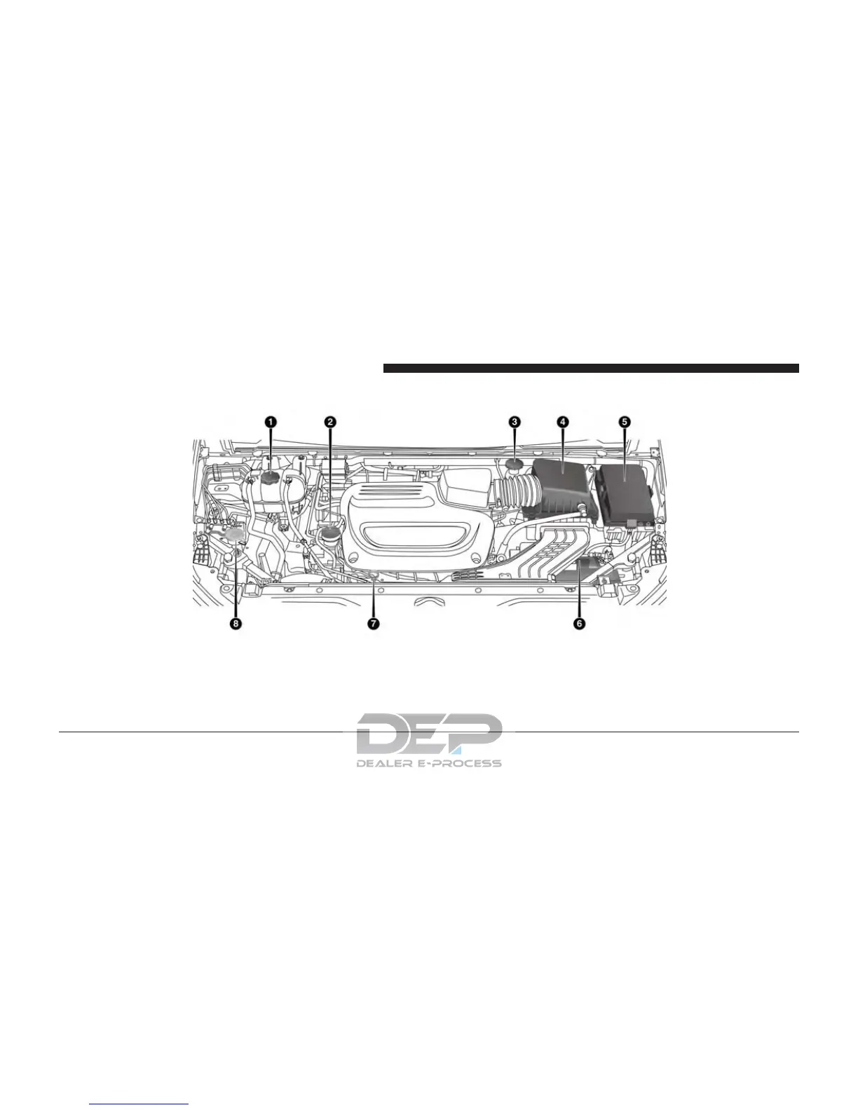 3 — Brake Fluid Reservoir 8 — Window Washer Fill