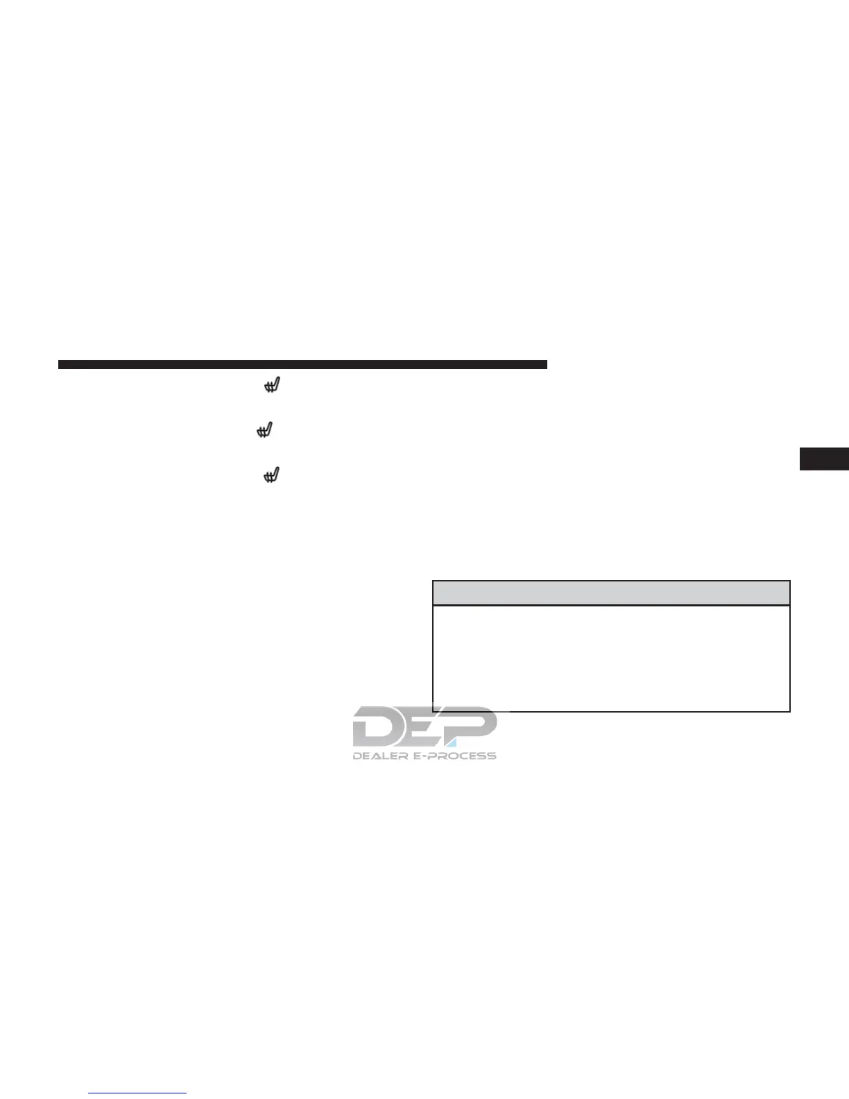 • The engine must be running for the heated seats to