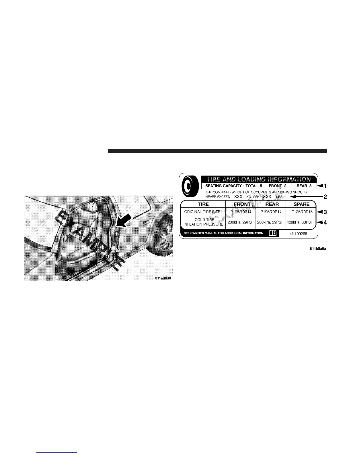NOTE: The proper cold tire inflation pressure is listed