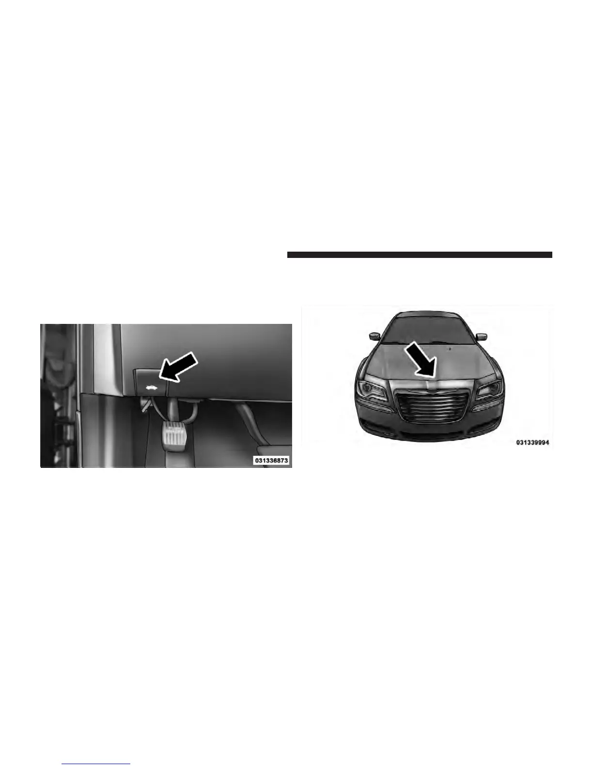 Two latches must be released to open the hood.