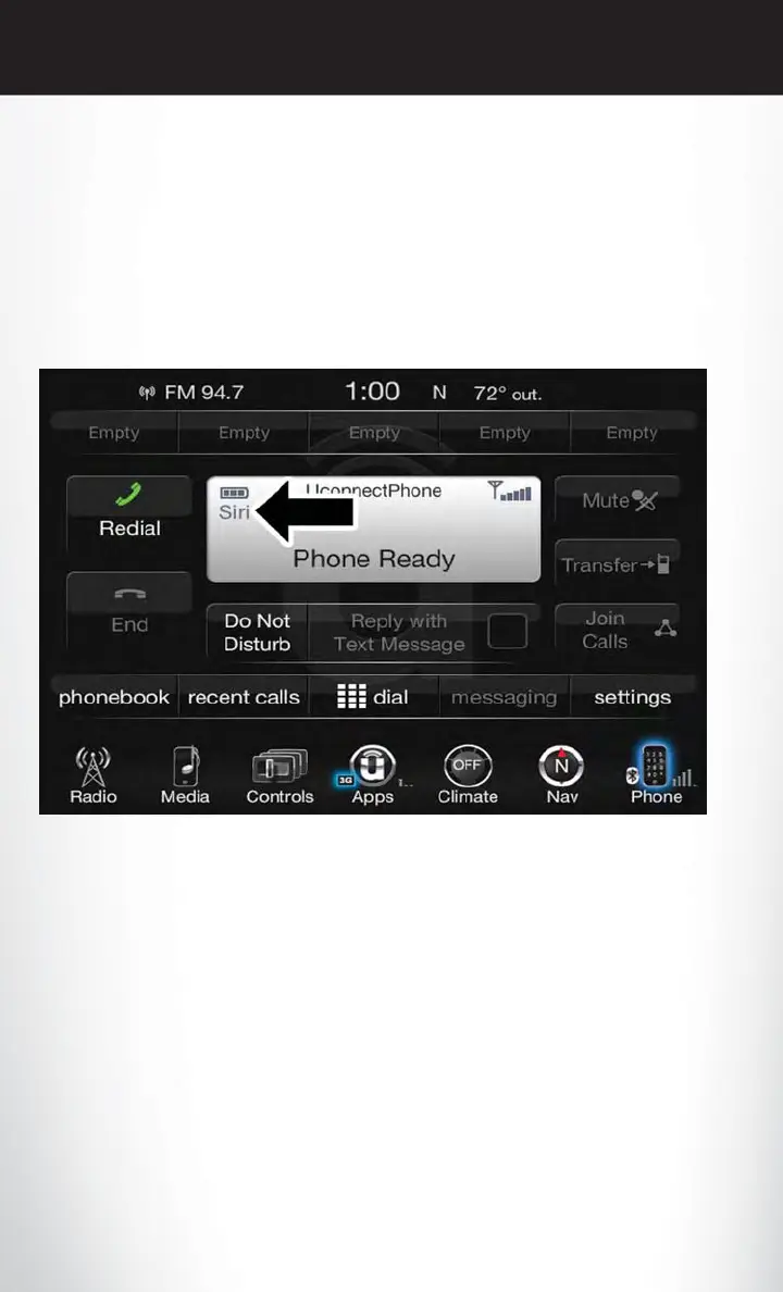 To enable Siri push and hold, then release the Uconnect Voice Recognition (VR) button on the
