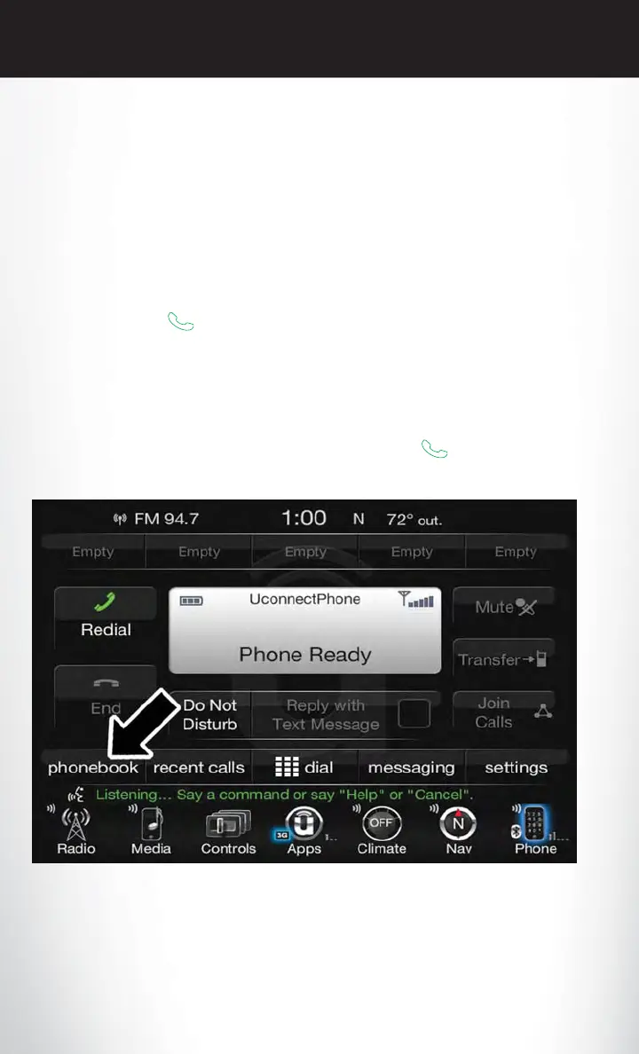 Making and answering hands-free phone calls is easy with Uconnect. When the Phonebook