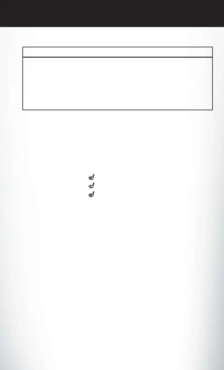 • The engine must be running for the heated seats to operate.