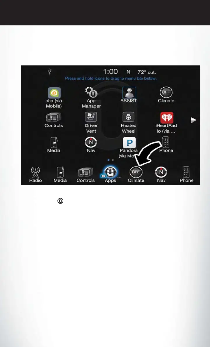 The Uconnect features and services in the main menu bar are easily changed for your conve-