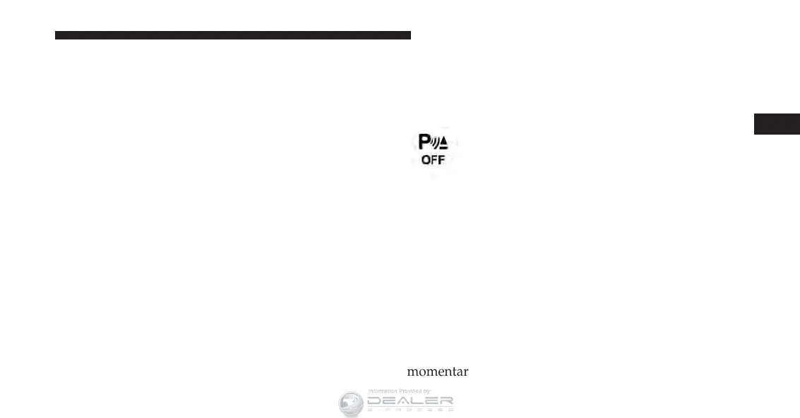 “PARKSENSE OFF” message for as long as the vehicle is