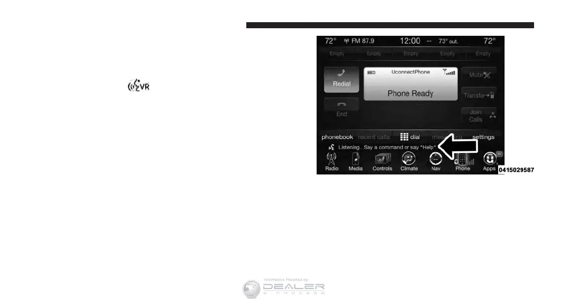 • Help to hear a list of suggested Voice Commands