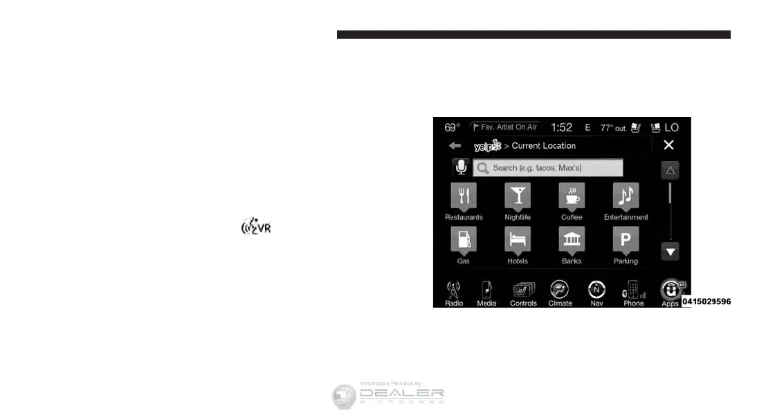 3. Press the “Yelp” button on the touchscreen.