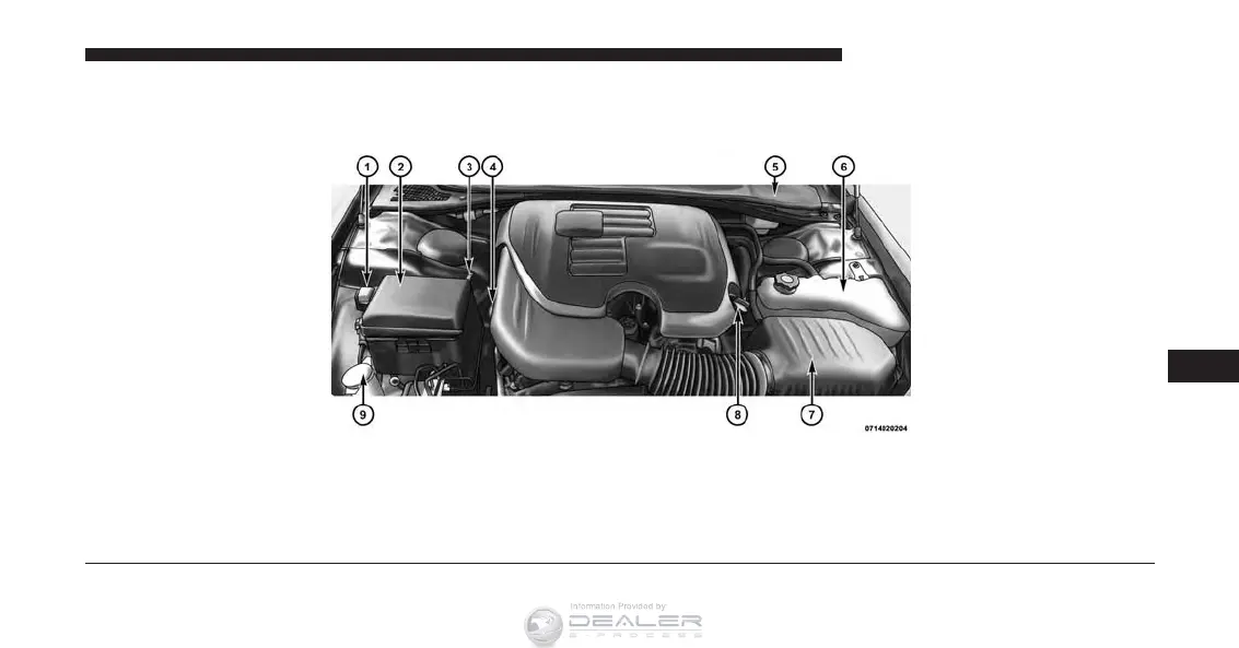 2 — Power Distribution Center (Fuses) 5 — Brake Fluid Reservoir Access Cover 8 — Engine Oil Fill