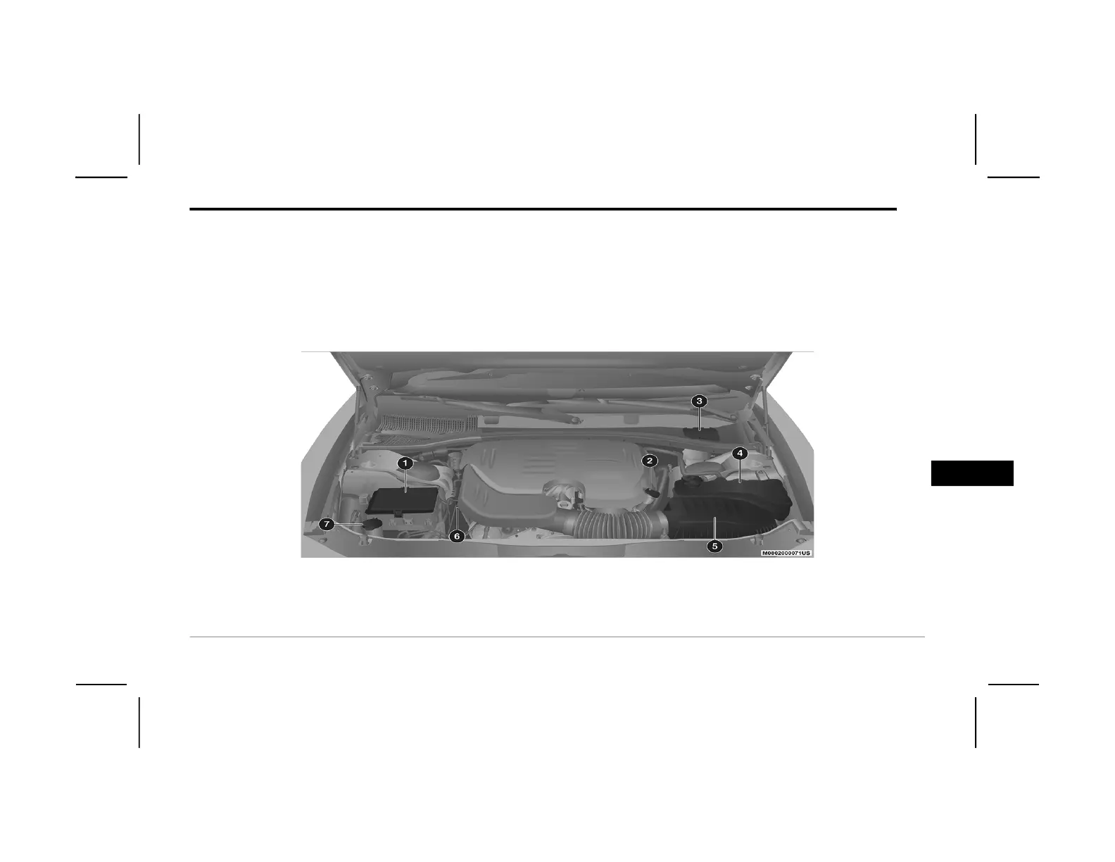 3 — Brake Fluid Reservoir Access Cover 7 — Washer Fluid Reservoir Cap