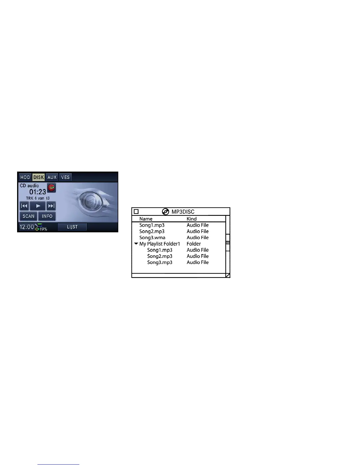 MP3- en WMA-formaat van een disk of via USB