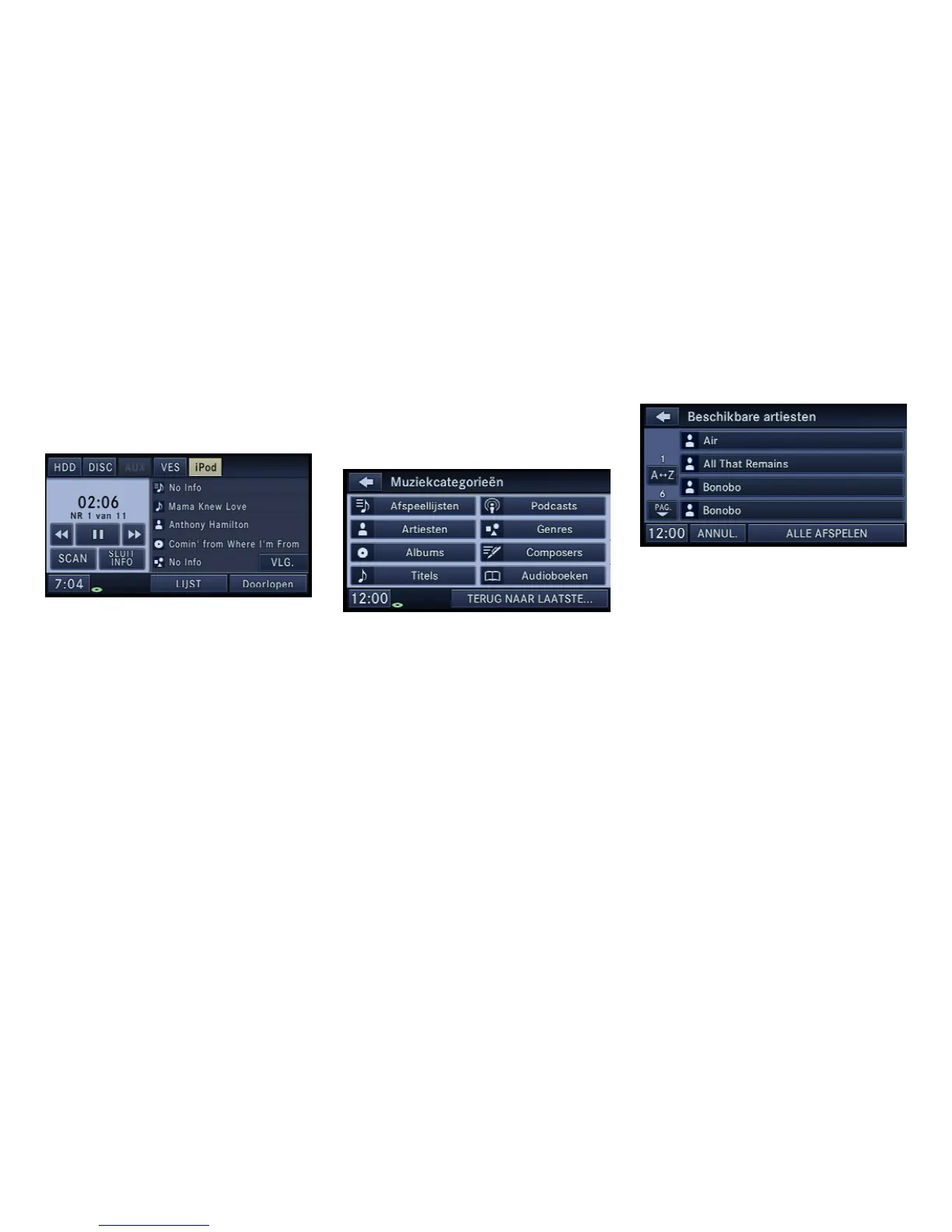 Kies de schermtoets Artists (Artiesten) in dit