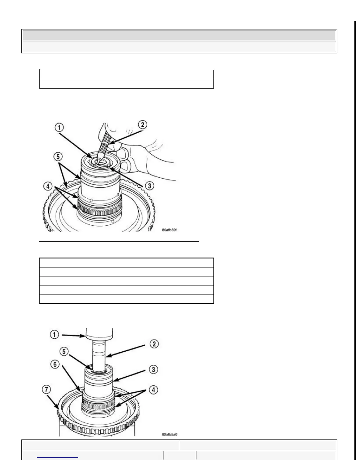 19. Using Disk 6057 (4) and an arbor press (1), compress return OD/Reverse piston return spring just enough