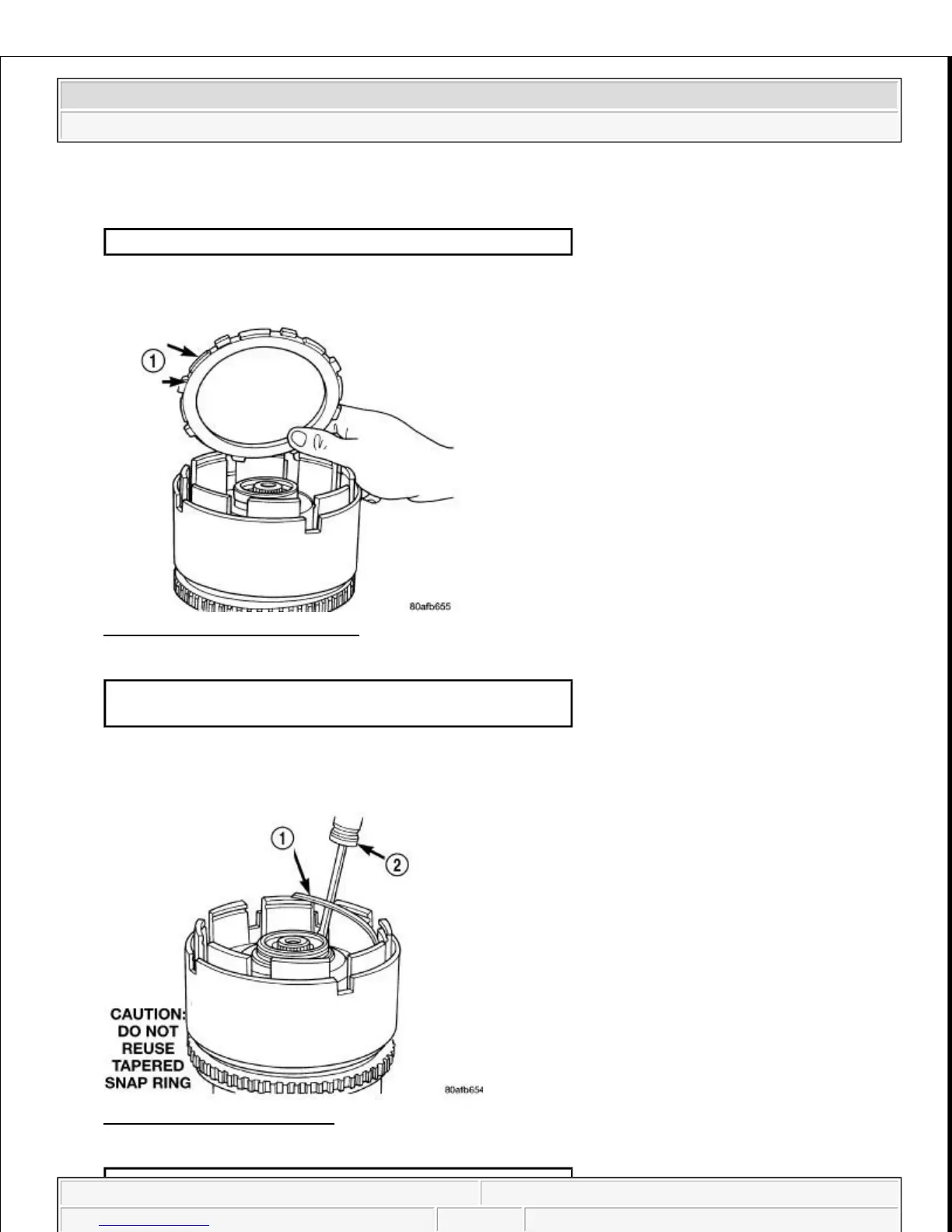 17. Place the OD/UD clutch reaction plate (1) and snap ring into position. The OD/UD clutches reaction plate