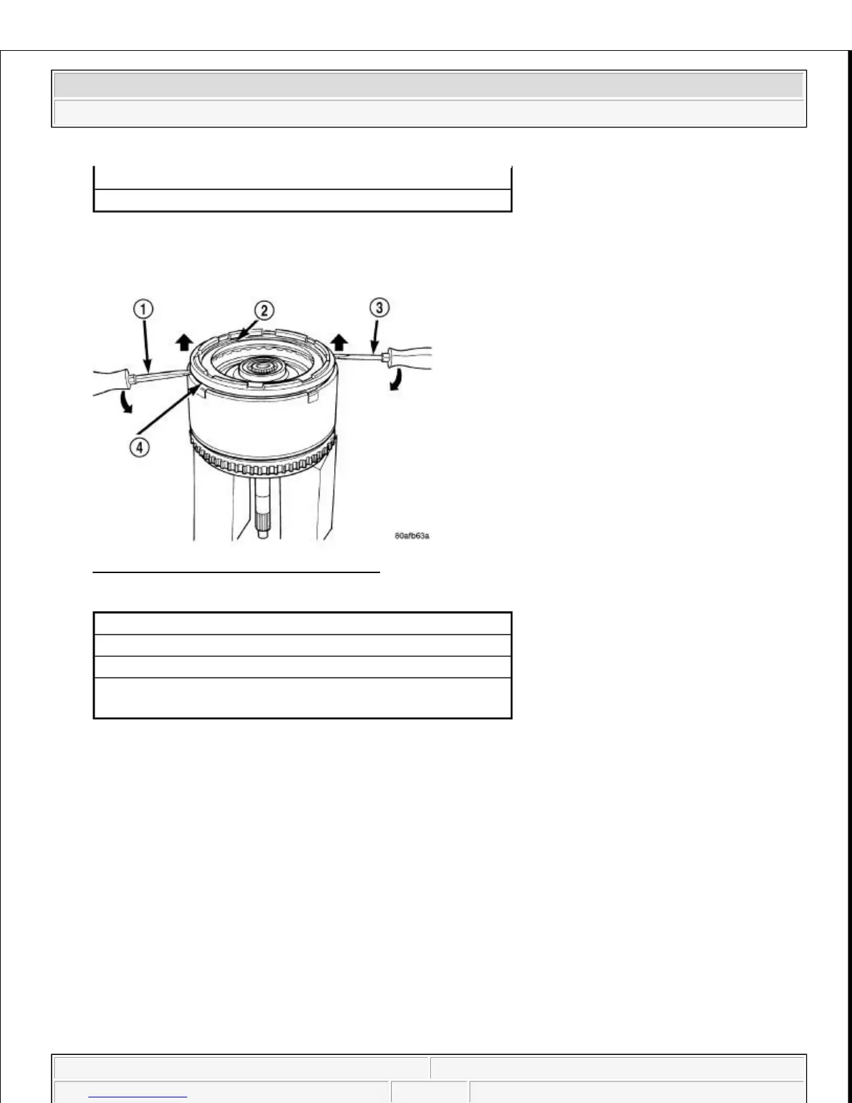 38. Tap reaction plate (3) down to allow installation of the reverse clutch snap ring (1). Install reverse clutch
