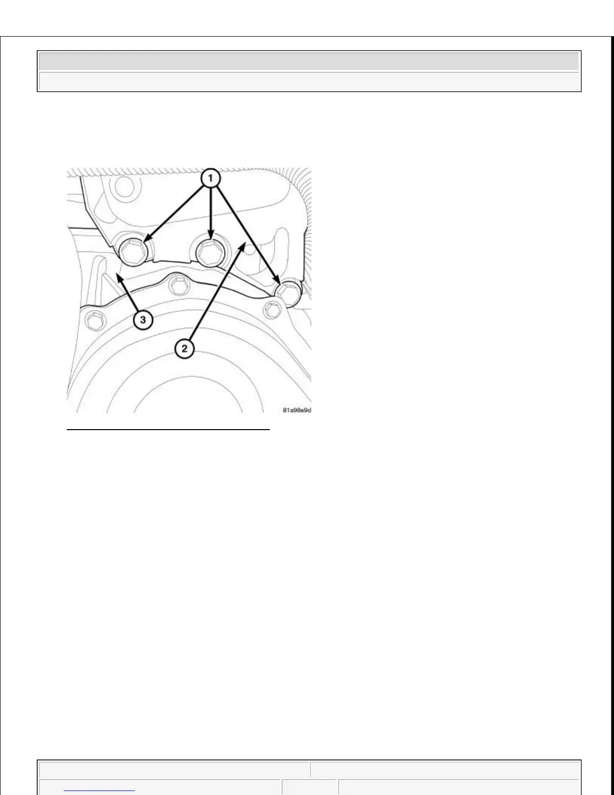 31. Remove the bolts (1) holding left transmission mount (2) to the transmission (3).