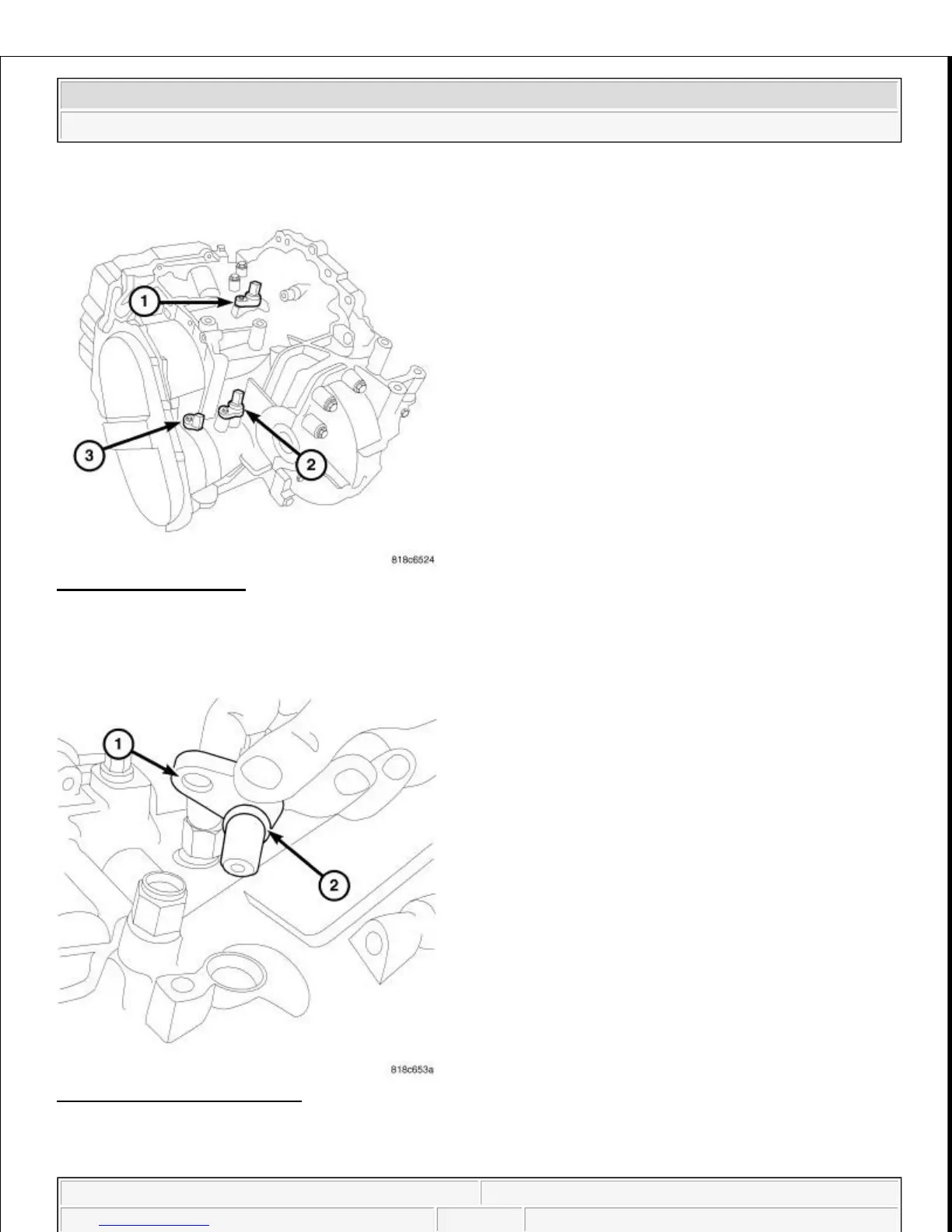The Transfer Shaft Speed Sensor (1) is bolted to the transaxle case and uses a O-ring (2) to seal it to the