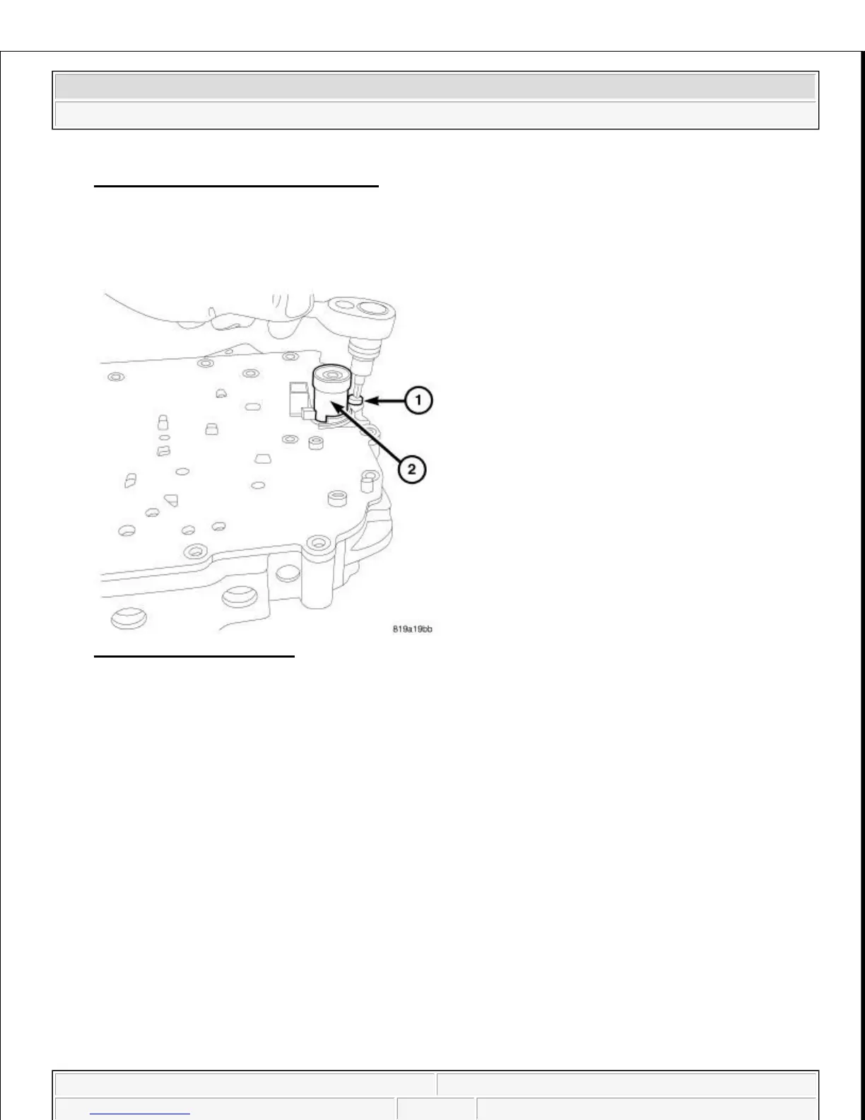 6. Remove the bolt (1) at the pressure control solenoid (2).