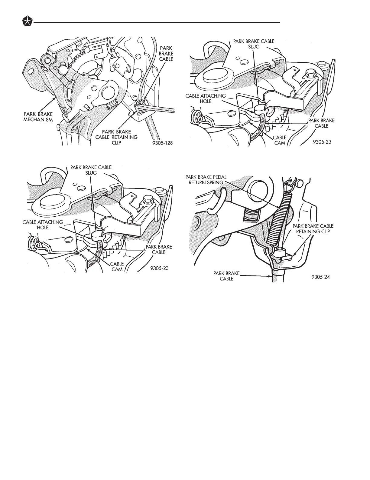 (2) Align park brake cable slug with attaching