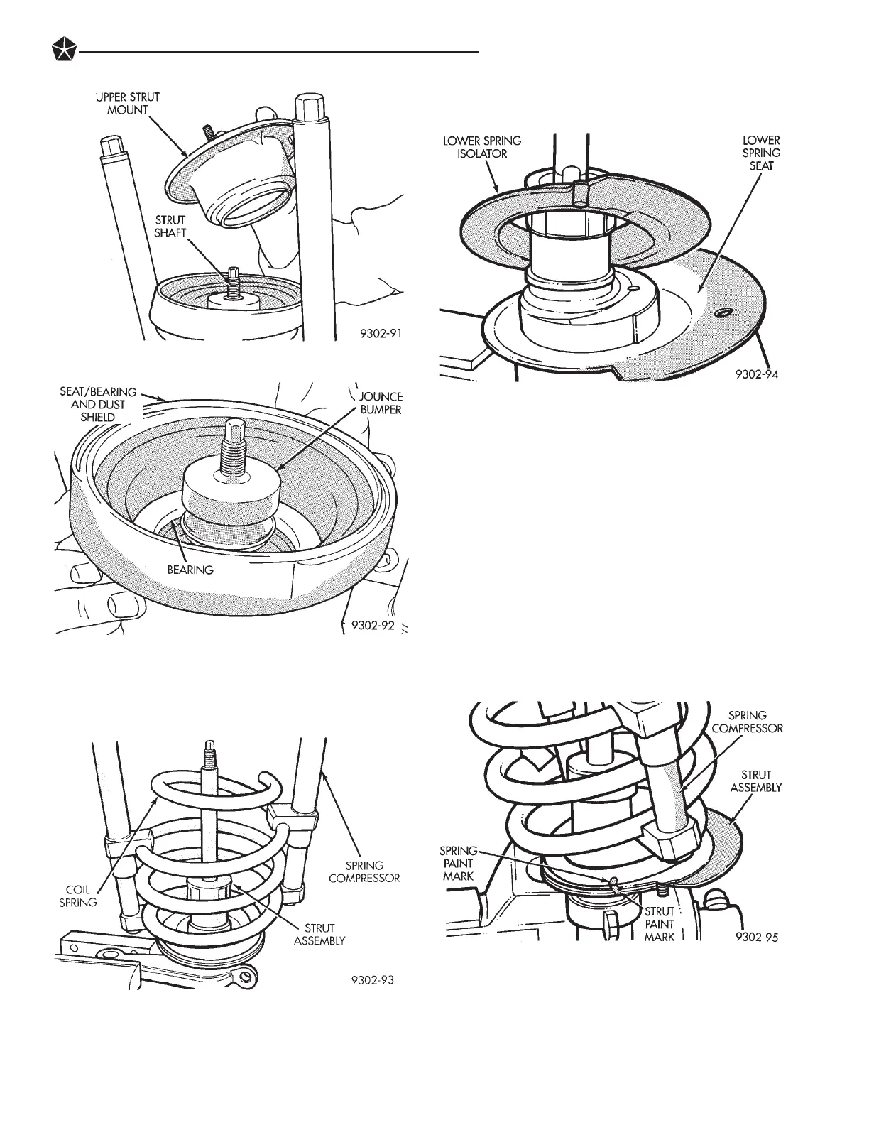 (2) Install compressed coil spring onto strut assem-