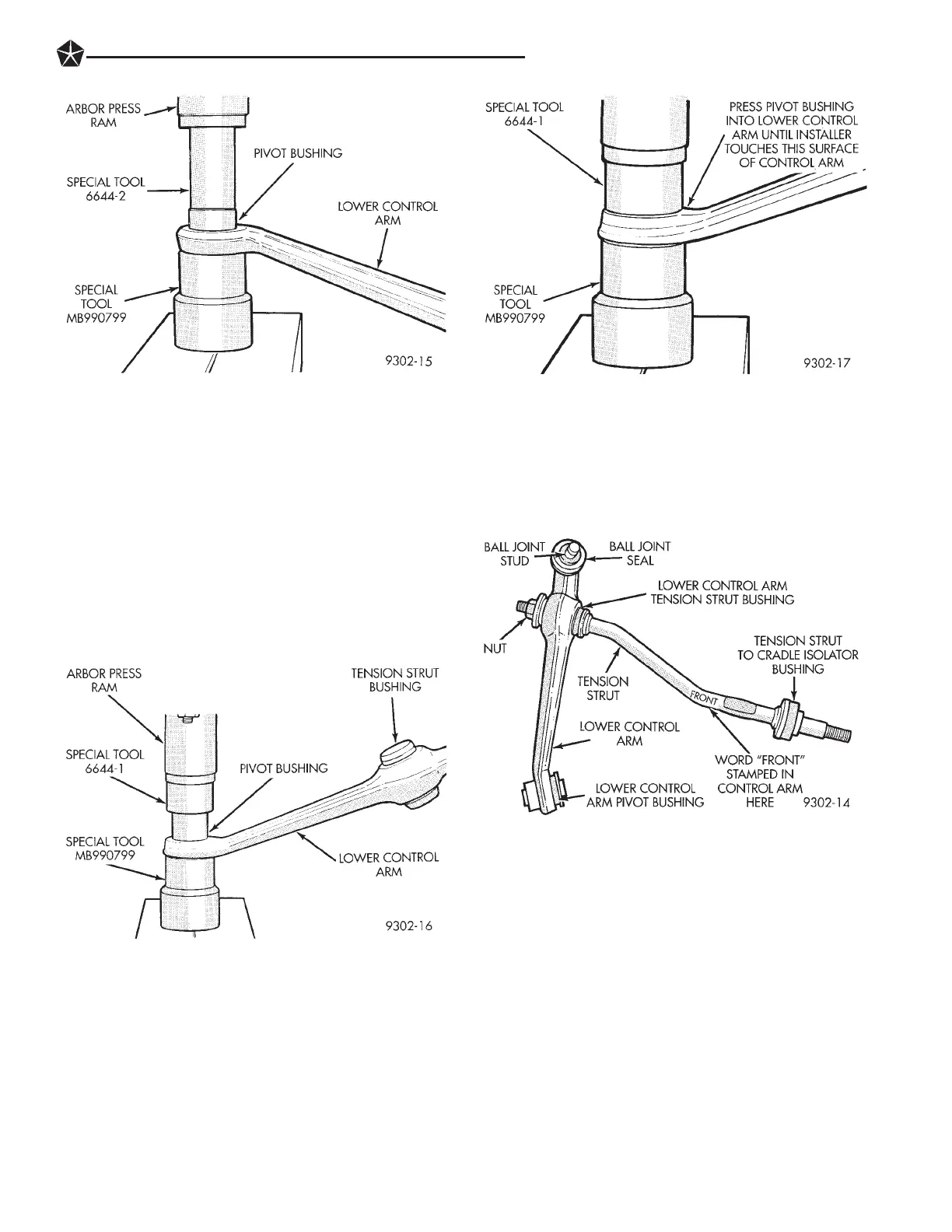 (3) Press lower control arm pivot bushing into