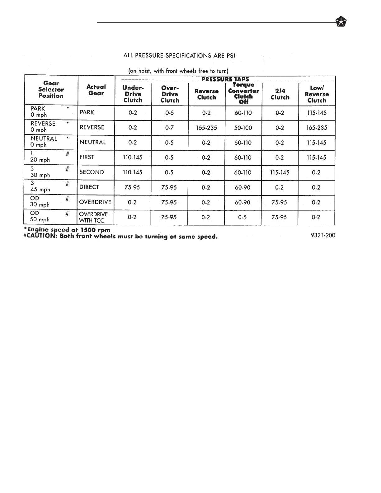 (3) Clutch circuit leaks are indicated if pressures do