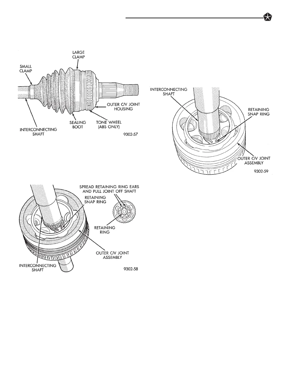 shaft retaining snap ring (Fig. 2). Slide outer C/V joint
