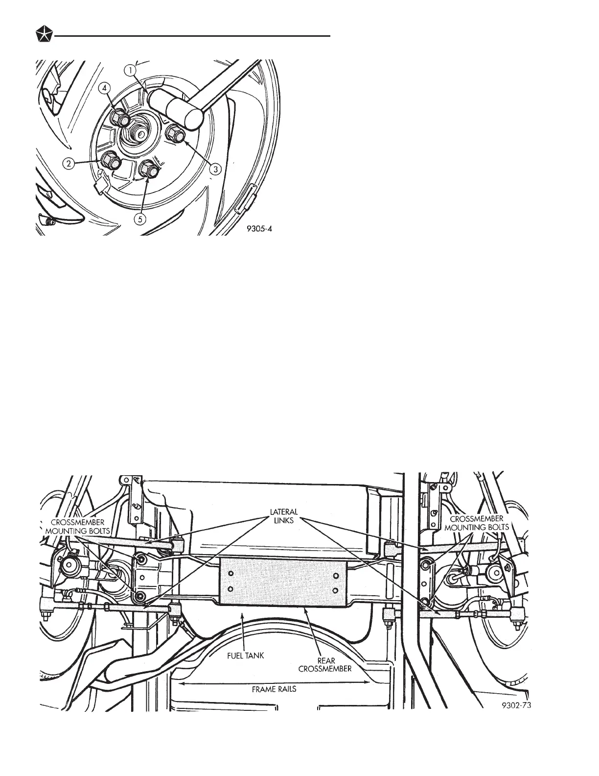 the 4 crossmember to frame rail attaching bolts (Fig.