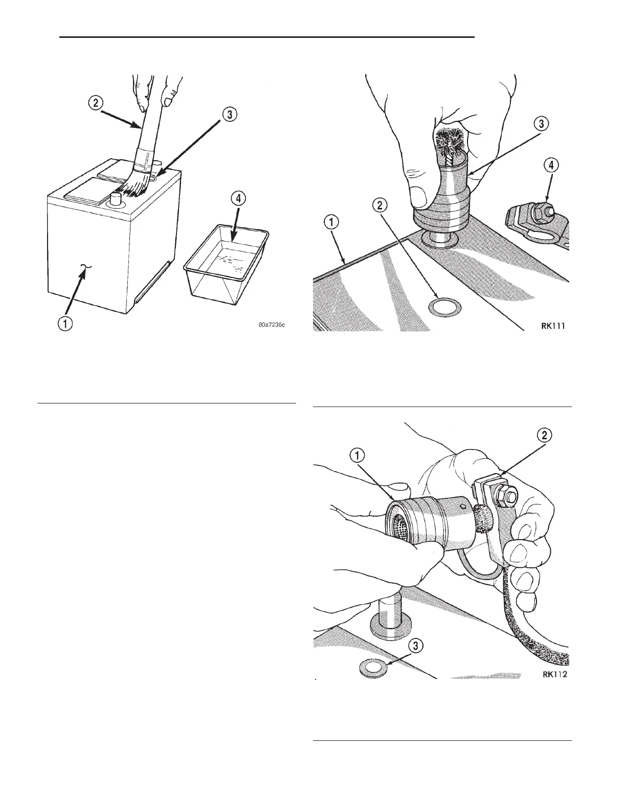(7) Clean battery cable clamps with a battery ter-