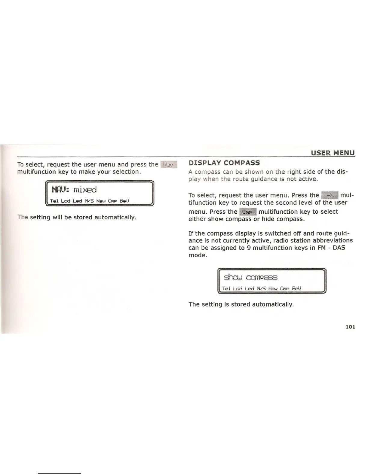 To select, request the user menu. Press the mul-