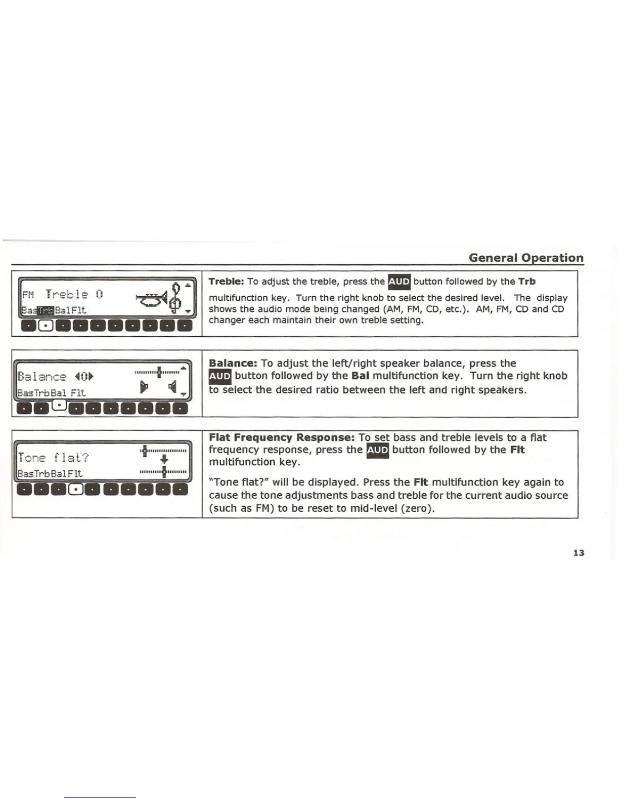 Treble: To adjust the treble, press the Ebutton followed by the Trb
