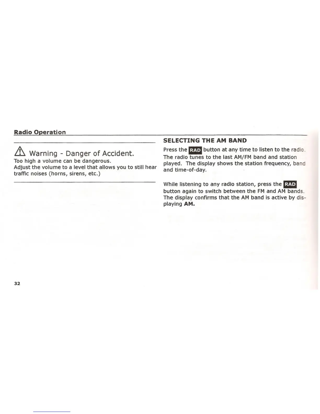 SELECTING THE AM BAND