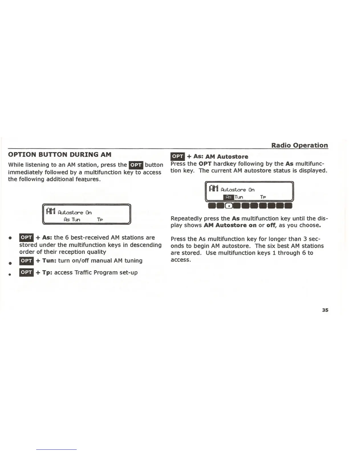 tion key. The current AM autostore status is displayed.