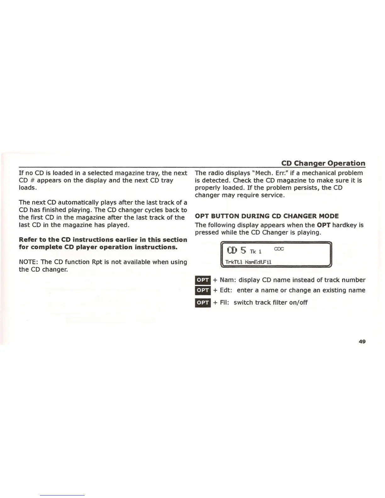 OPT BUTTON DURING CD CHANGER MODE