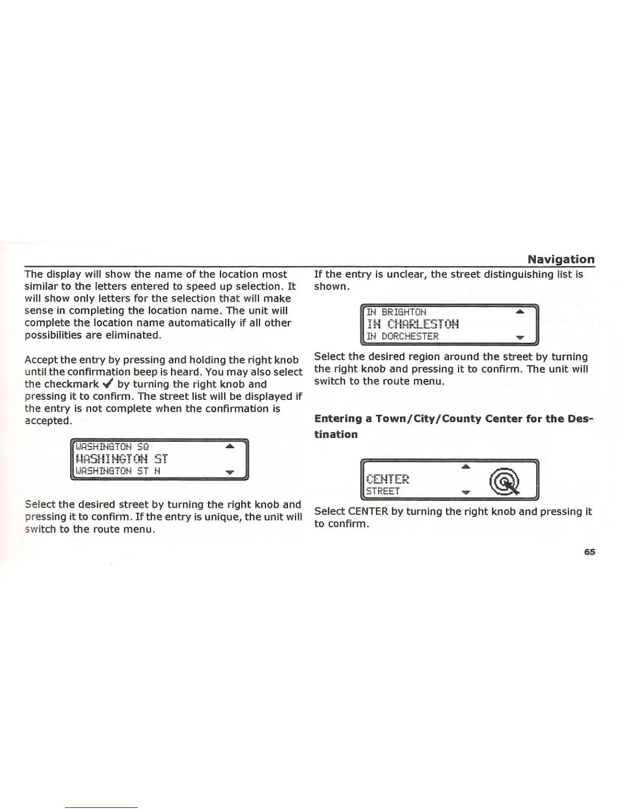 Select the desired street by turning the right knob and