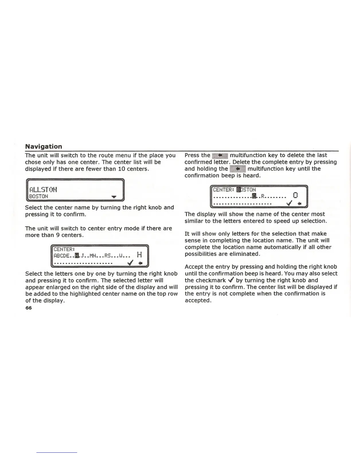 Select the center name by turning the right knob and