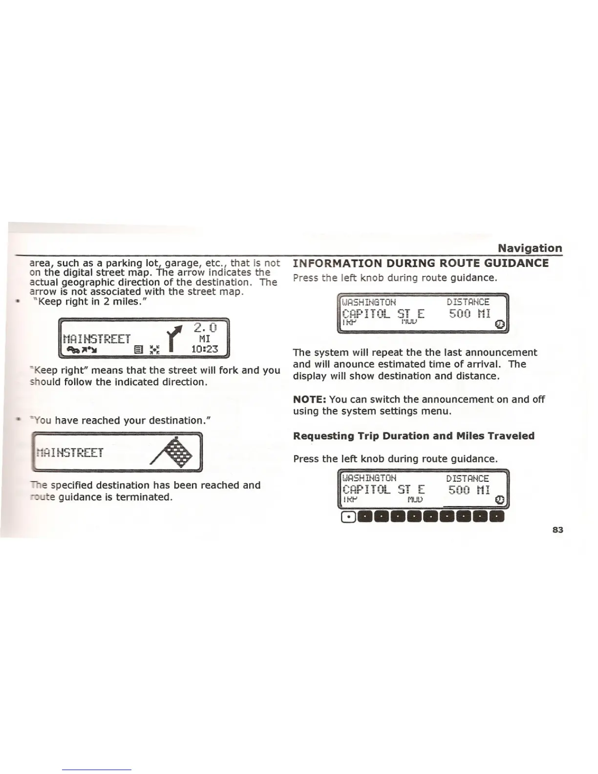 INFORMATION DURING ROUTE GUIDANCE