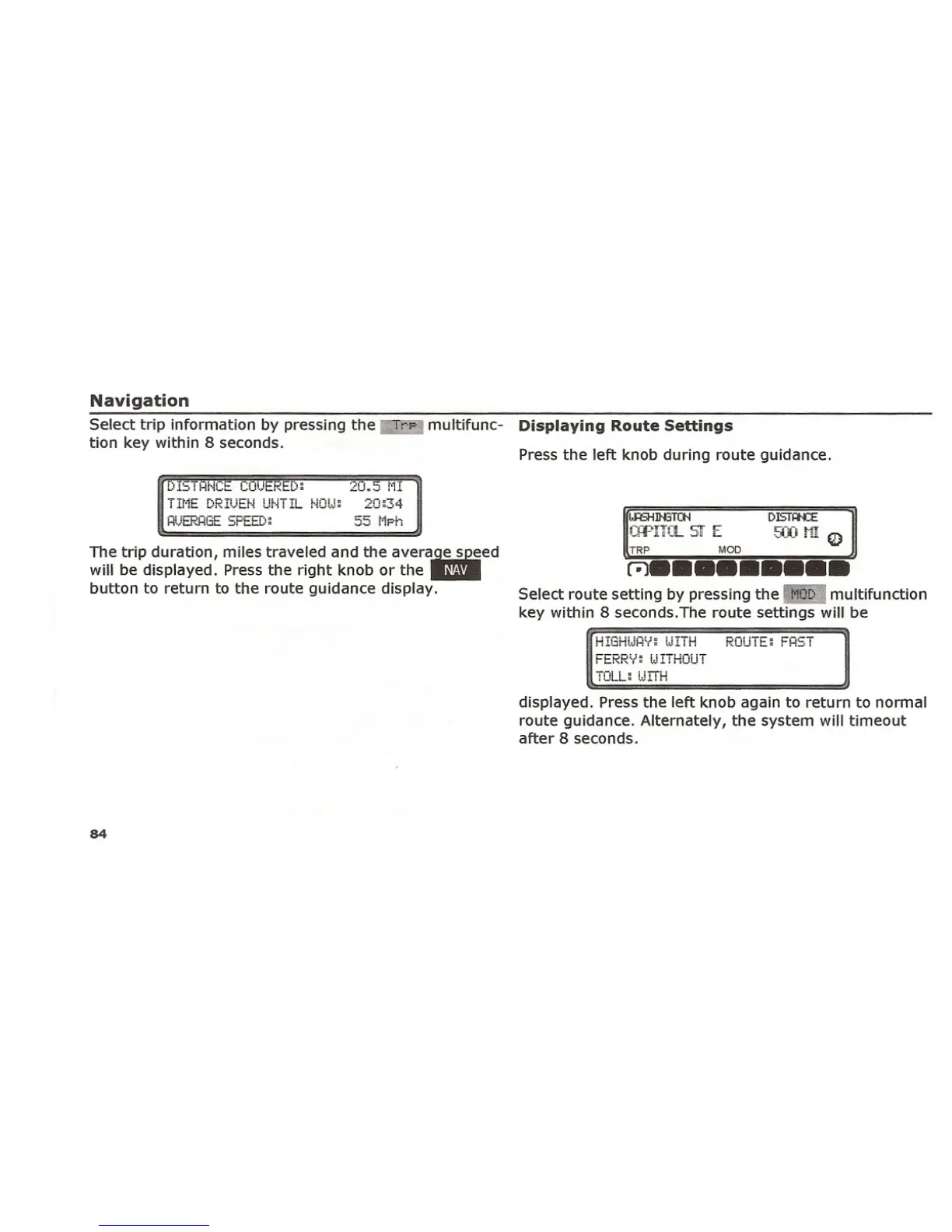 route guidance. Alternately, the system will timeout