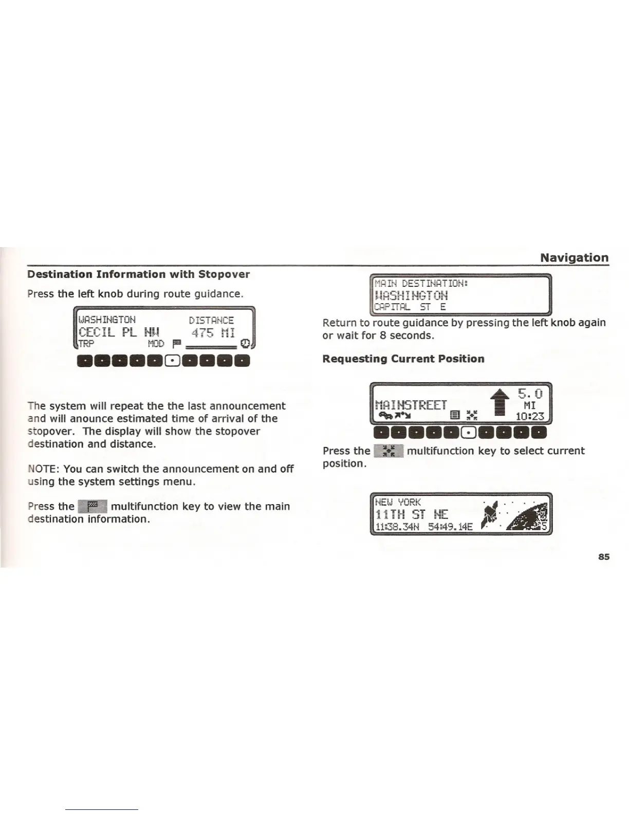 Return to route guidance by pressing the left knob again
