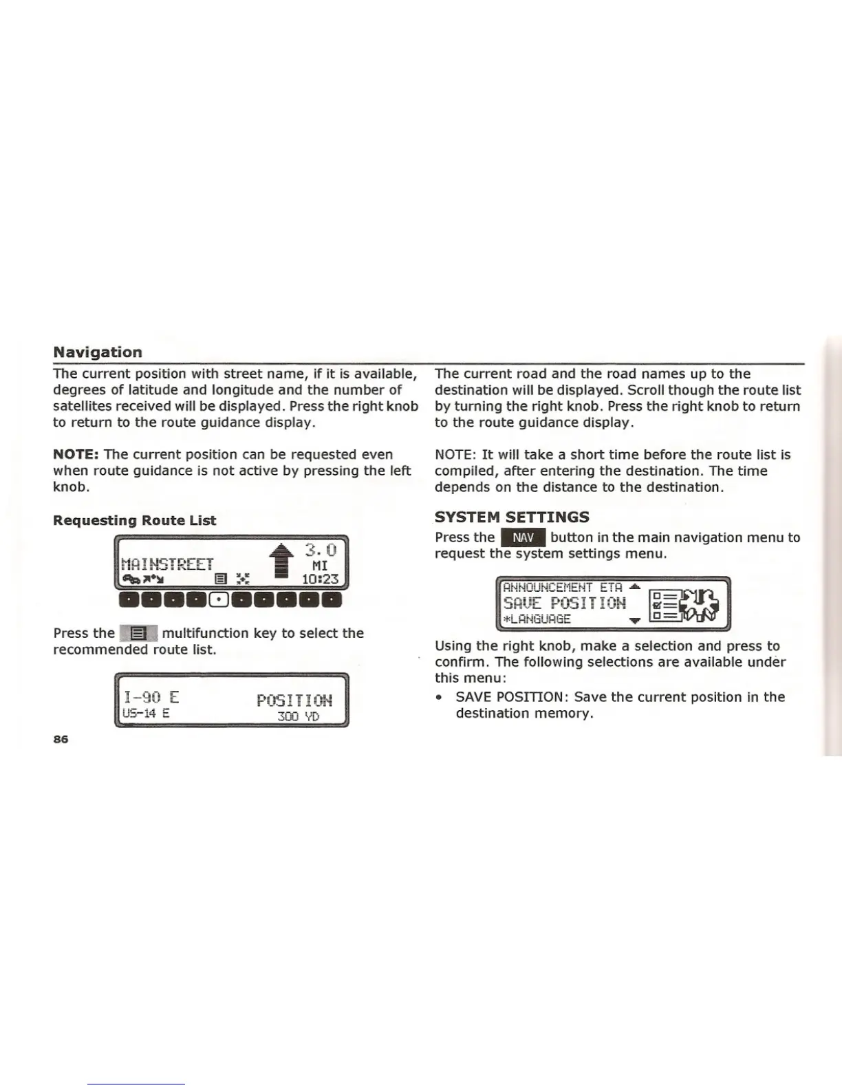 • SAVE POSITION: Save the current position in the