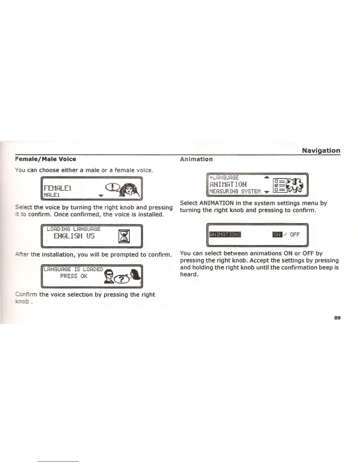 -elect the voice by turning the right knob and pressing