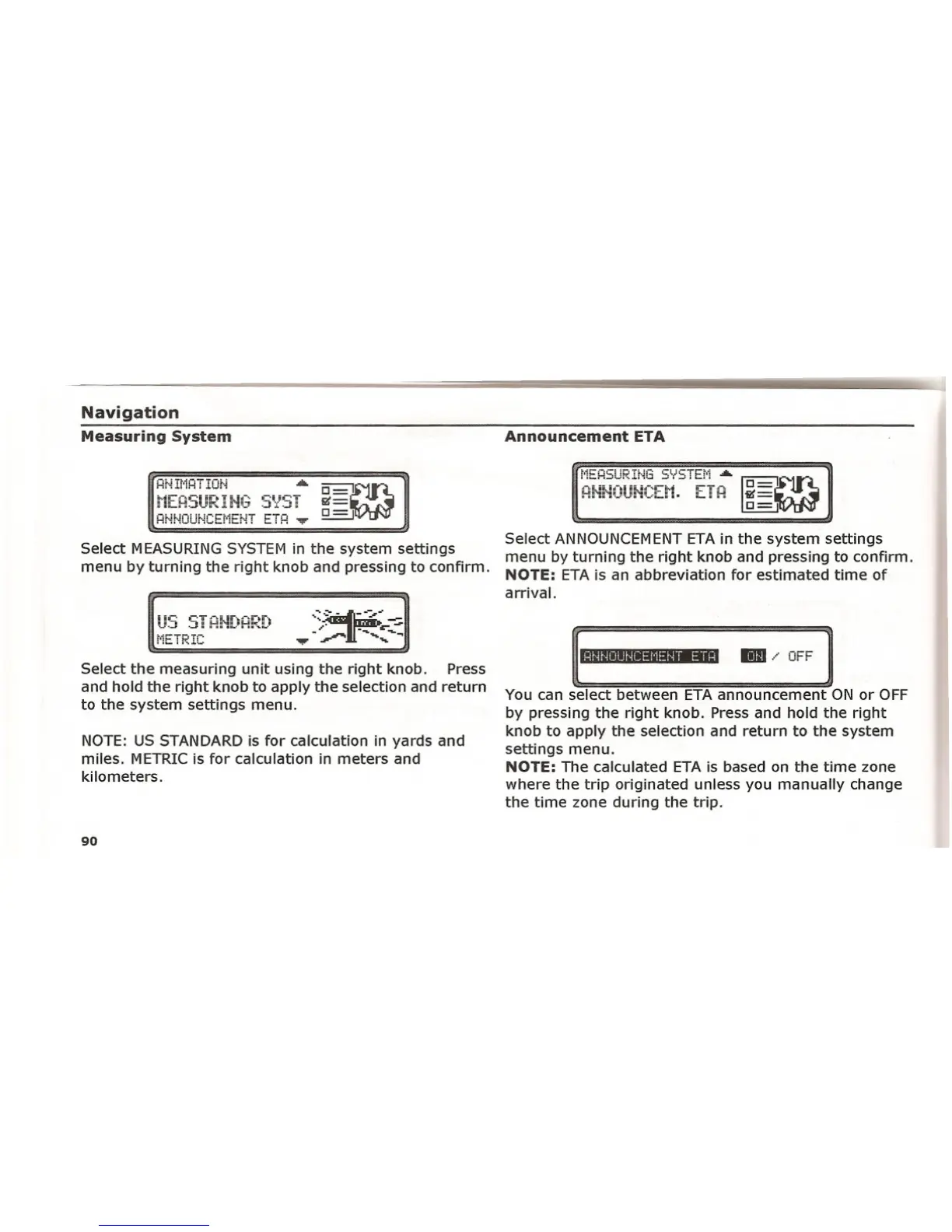 You can select between ETA announcement ON or OFF