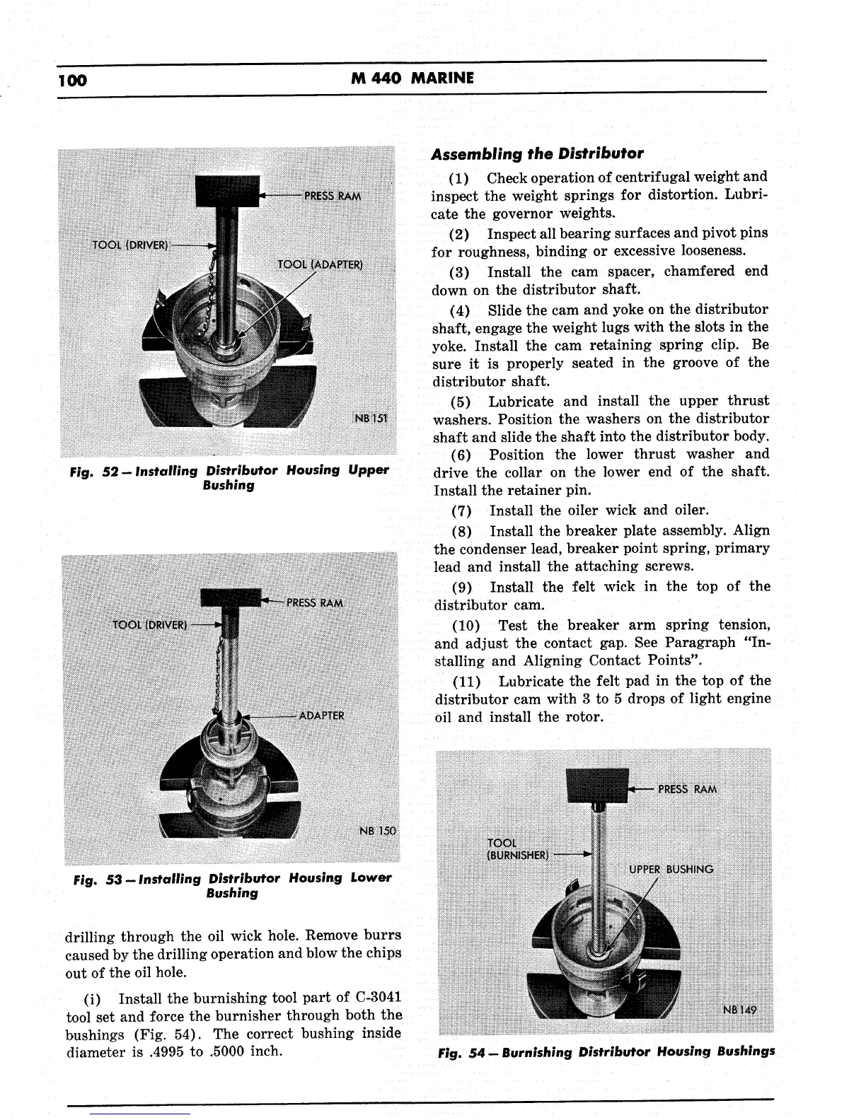 Chrysler M440 - Assembling the Distributor; Installing Distributor Housing Upper Bushing; Installing Distributor Housing Lower Bushing; Burnishing Distributor Housing Bushings