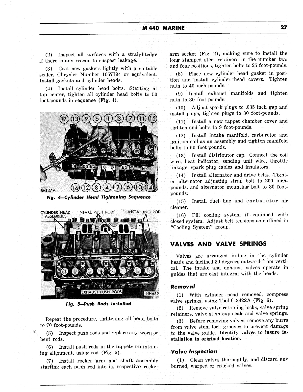 Chrysler M440 - Valves and Valve Springs; Cylinder Head Tightening Sequence; Push Rods Installed; Valve Inspection