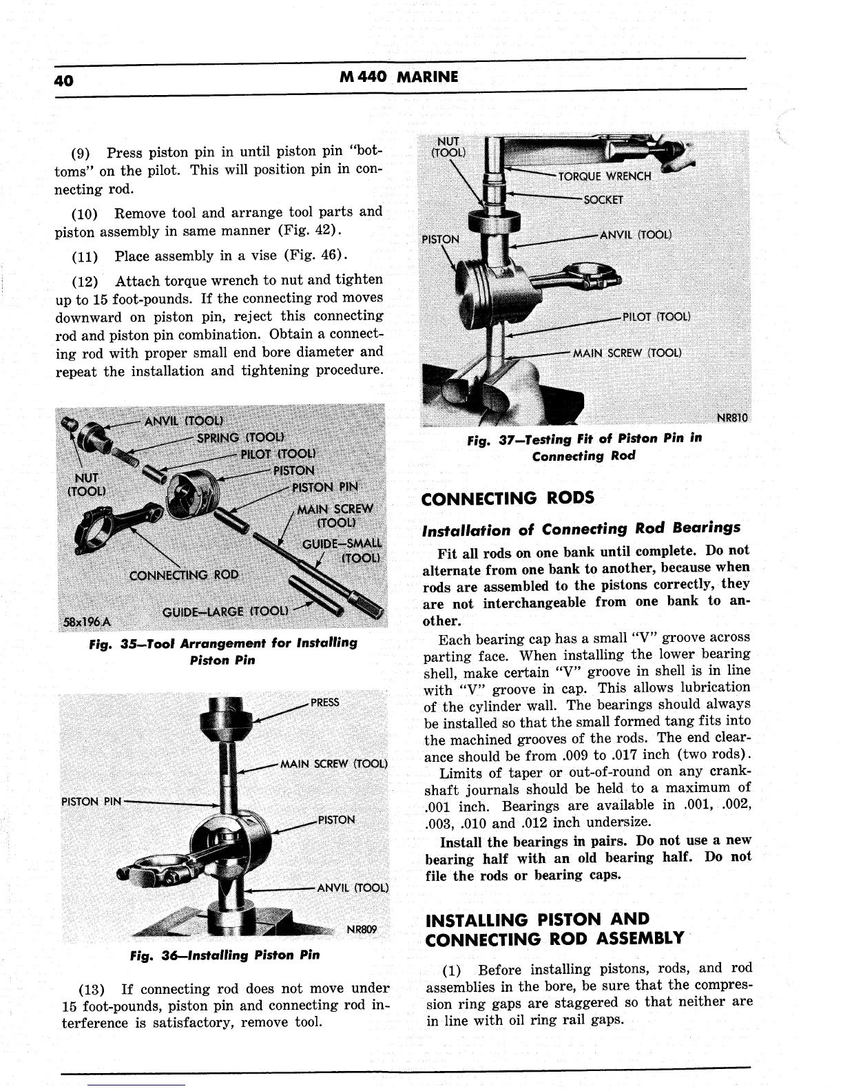 Chrysler M440 - Connecting Rods; Installing Piston and Connecting Rod Assembly; Installation of Connecting Rod Bearings