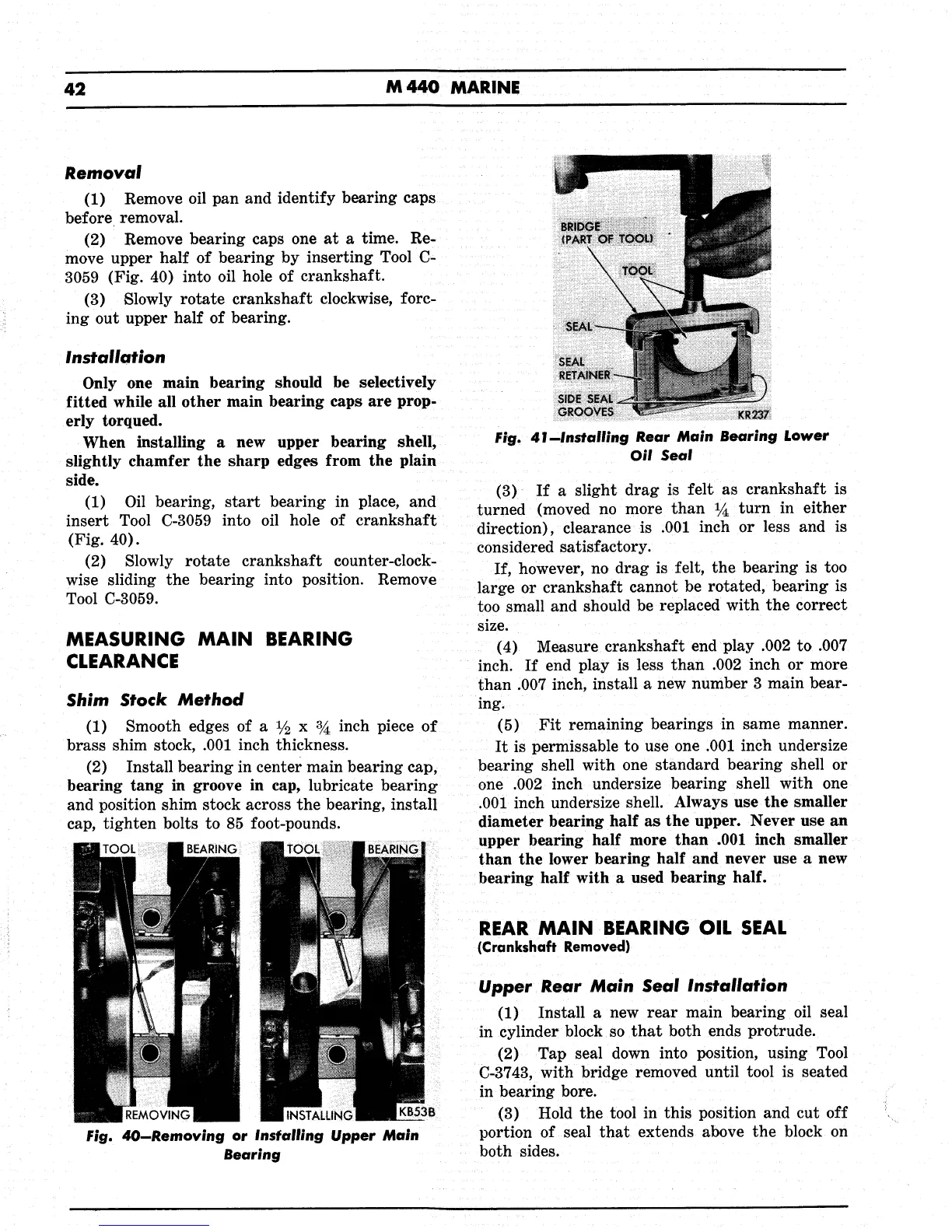 Chrysler M440 - Measuring Main Bearing Clearance; Rear Main Bearing Oil Seal; Shim Stock Method; Upper Rear Main Seal Installation