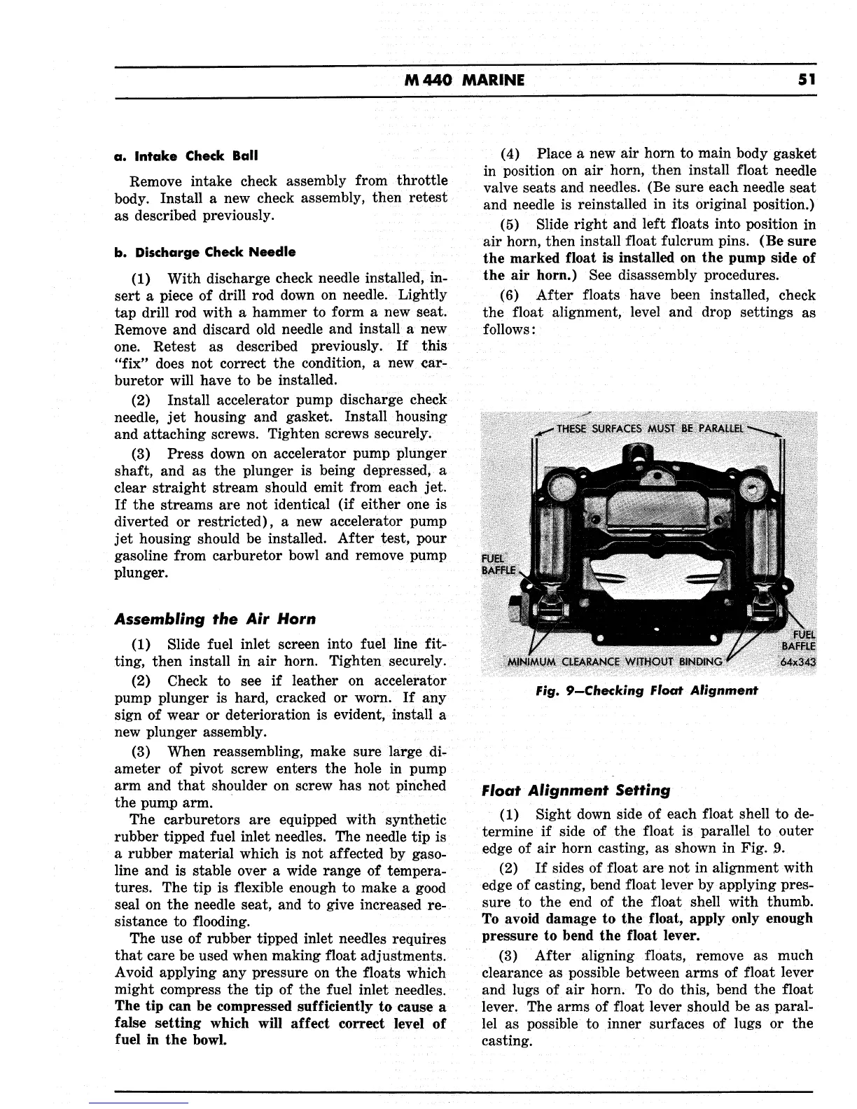 Chrysler M440 - Assembling the Air Horn; Float Alignment Setting; Checking Float Alignment