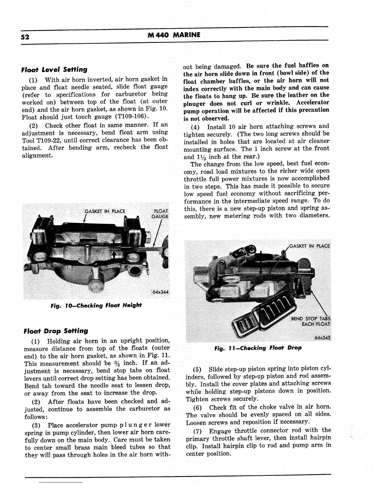 Chrysler M440 - Float Level Setting; Float Drop Setting; Checking Float Height; Checking Float Drop